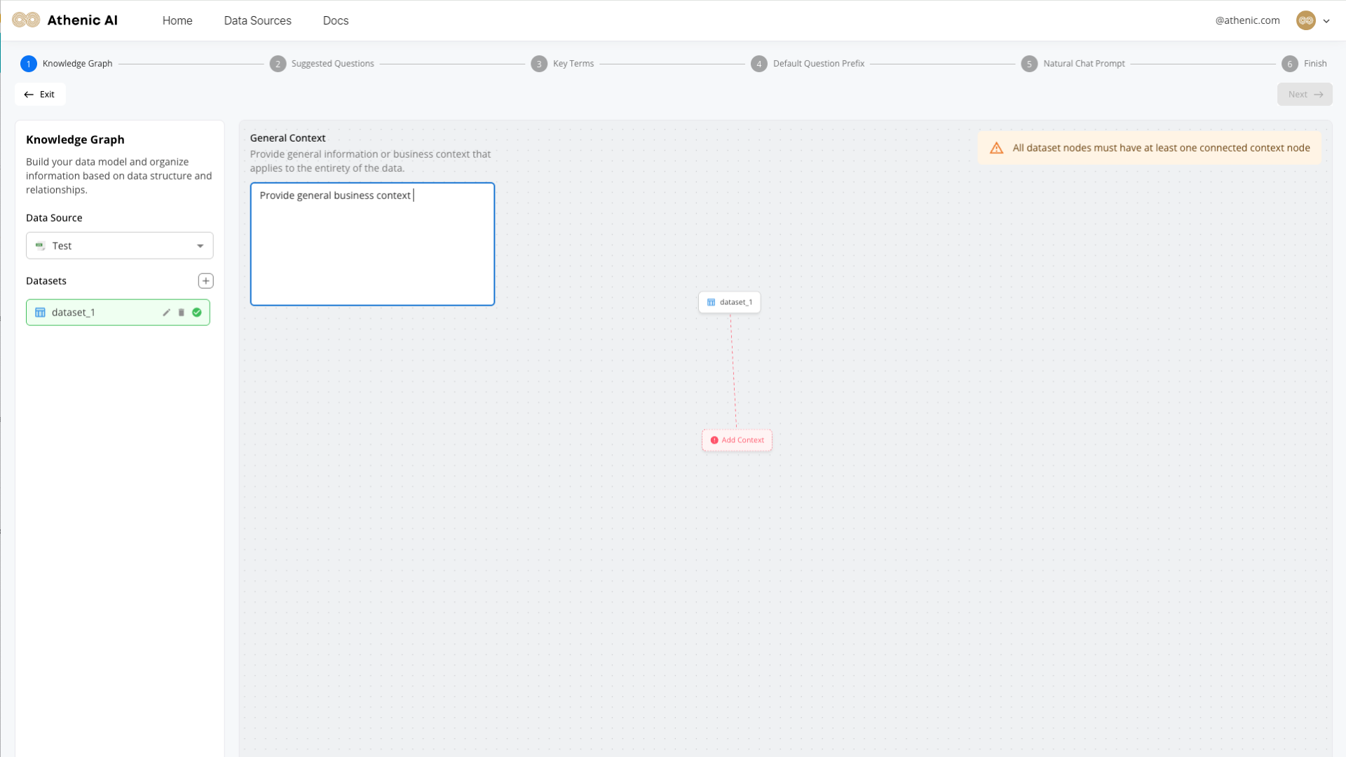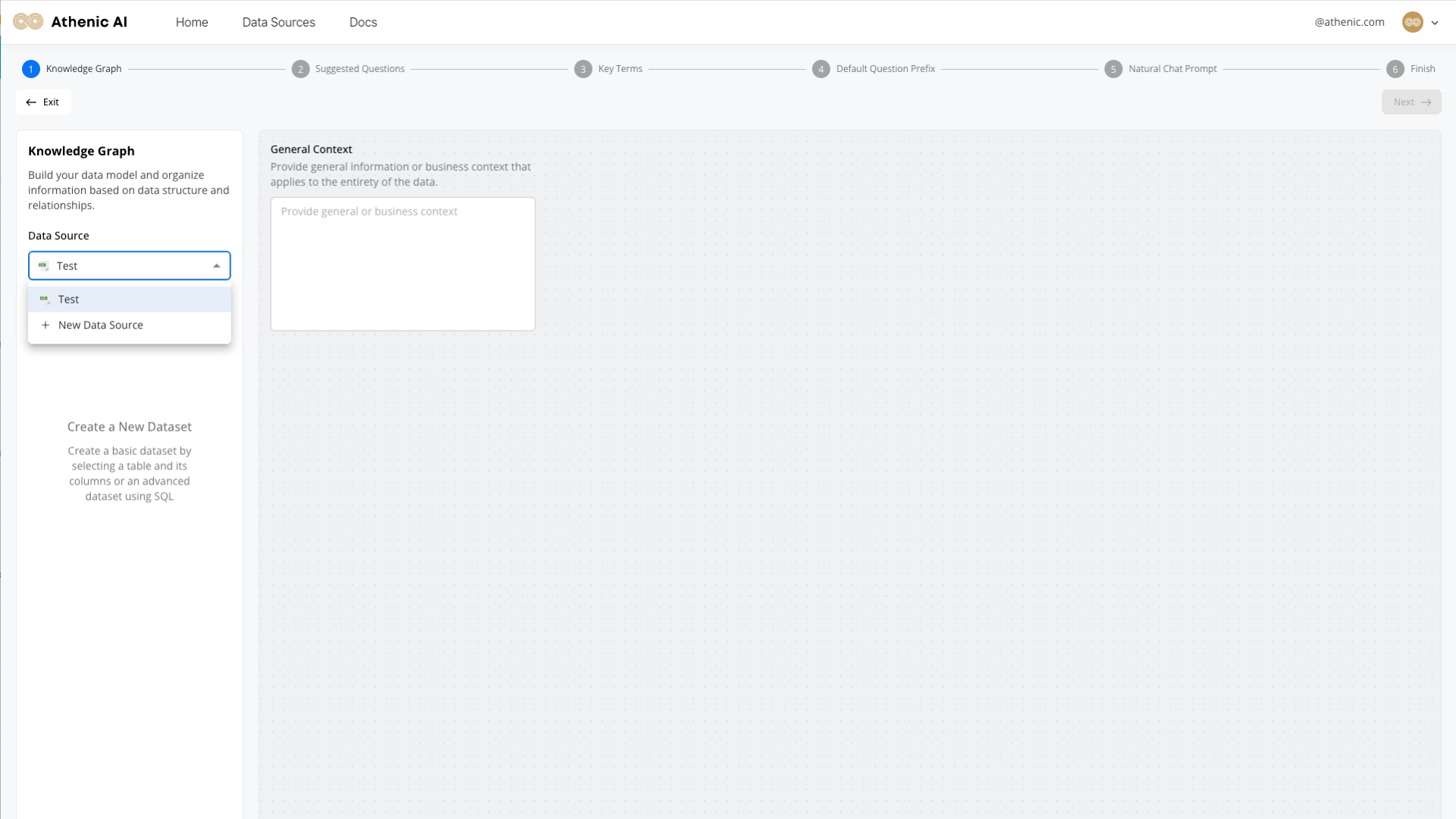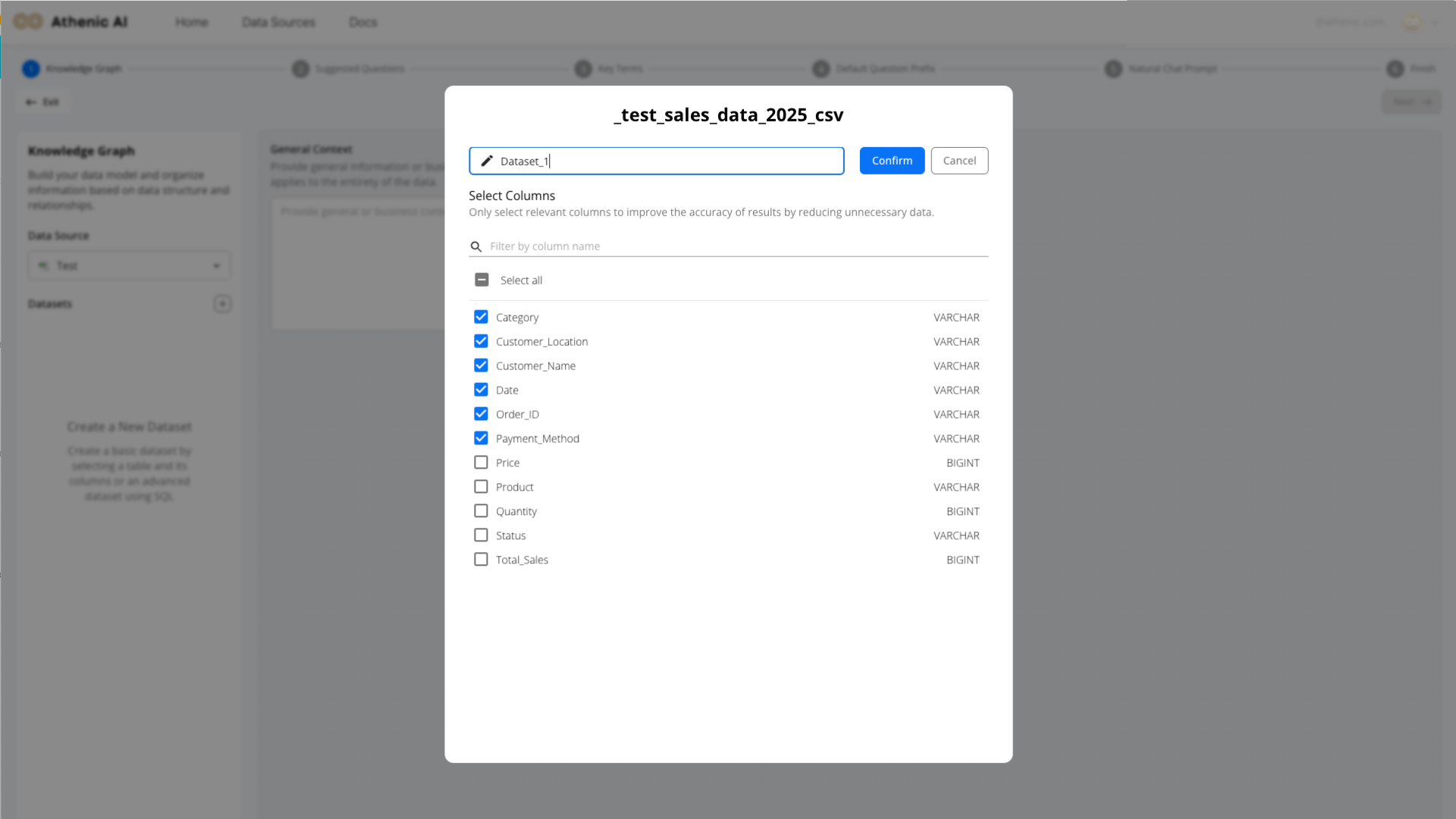 > For detailed instructions, see [Creating Datasets and Data Preparation](https://docs.athenic.com/getting-started/configure-data-source-and-data-preparation)