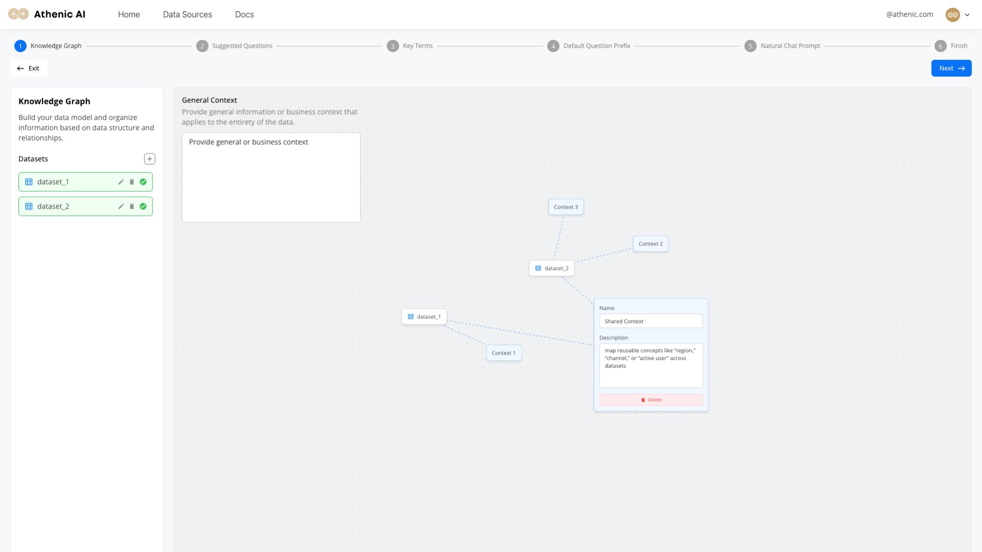 4. **Link shared context**—map reusable concepts like “region,” “channel,” or “active user” across datasets
