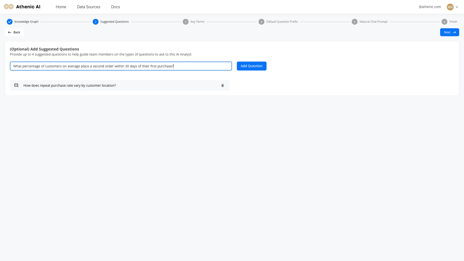 See [Suggested Questions](https://docs.athenic.com/getting-insights/using-projects/suggested-questions) for more.